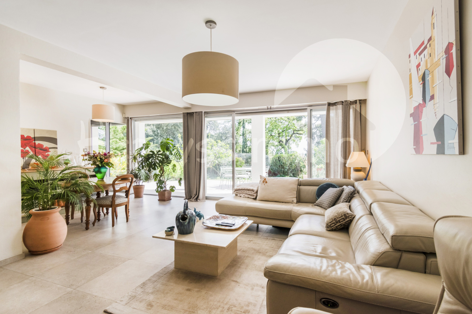 Hyères (83400)A Hyères, idéalement située à proximité de la plage, cette villa des années 70 avant-gardiste, entièrement rénovée, offre environ 233 m² habitables sur un magnifique terrain arboré de 1460 m² avec piscine et arbres fruitiers.