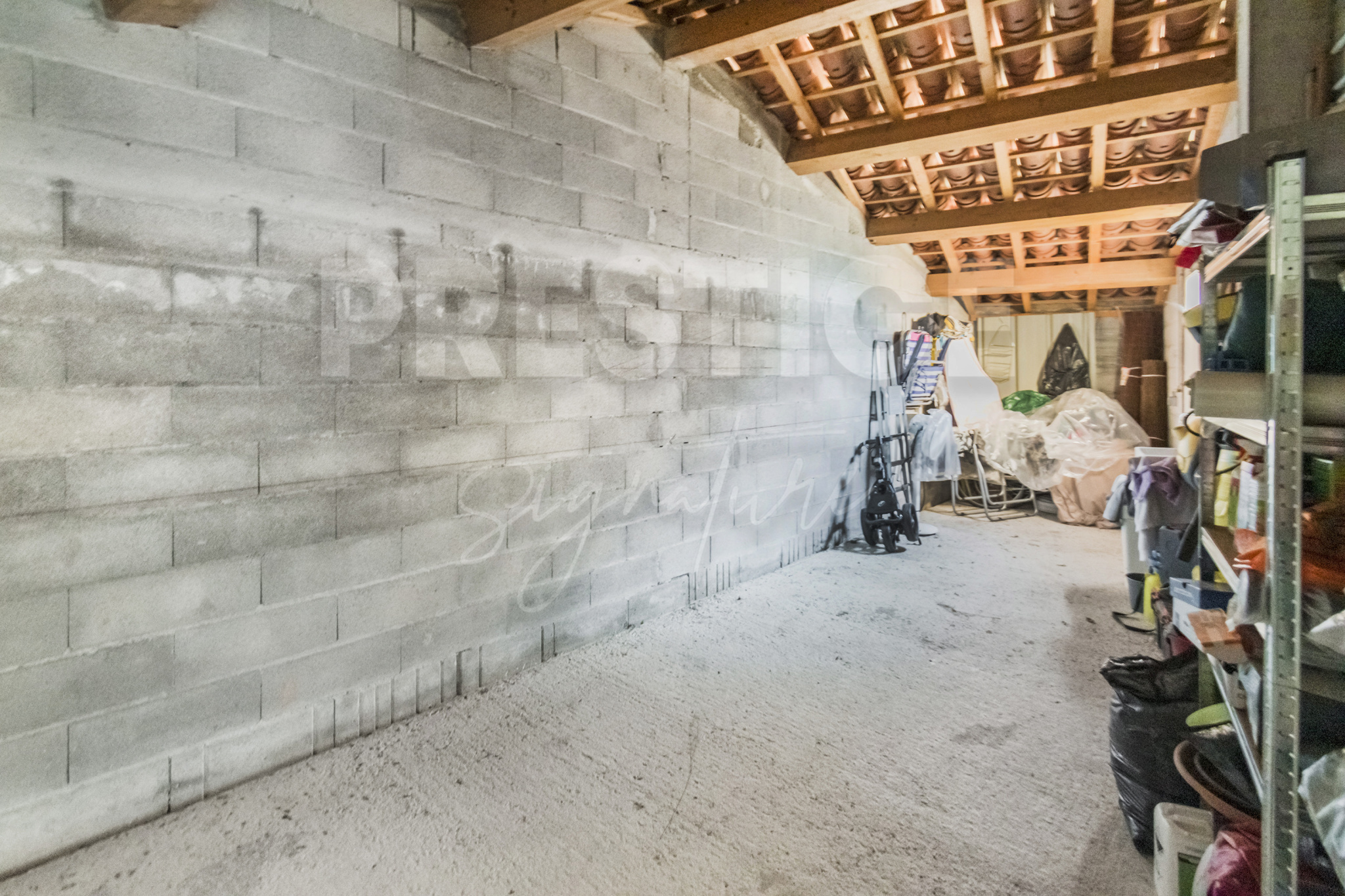 Le jardin, entièrement paysagé, accueille une piscine aux généreuses dimensions, créant un véritable havre de détente. Le garage à porte électrique permet le stationnement d'un véhicule, avec la possibilité de garer jusqu'à trois voitures supplémentaires sur la propriété.