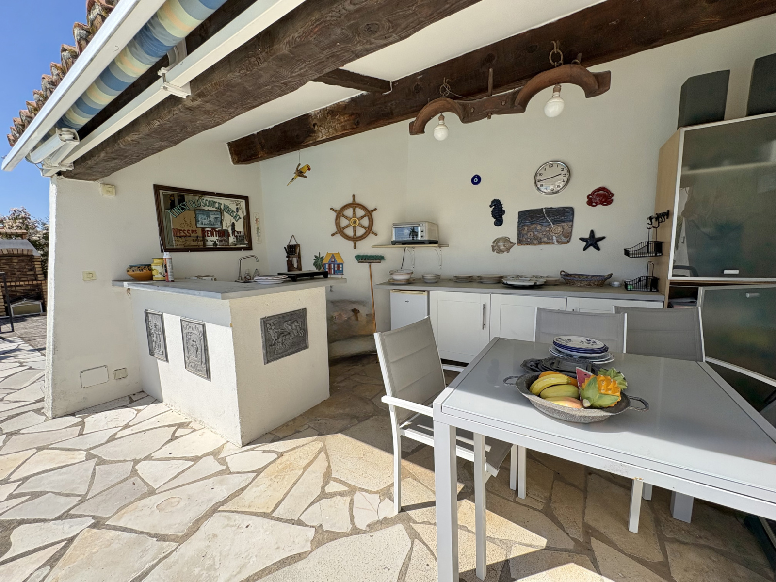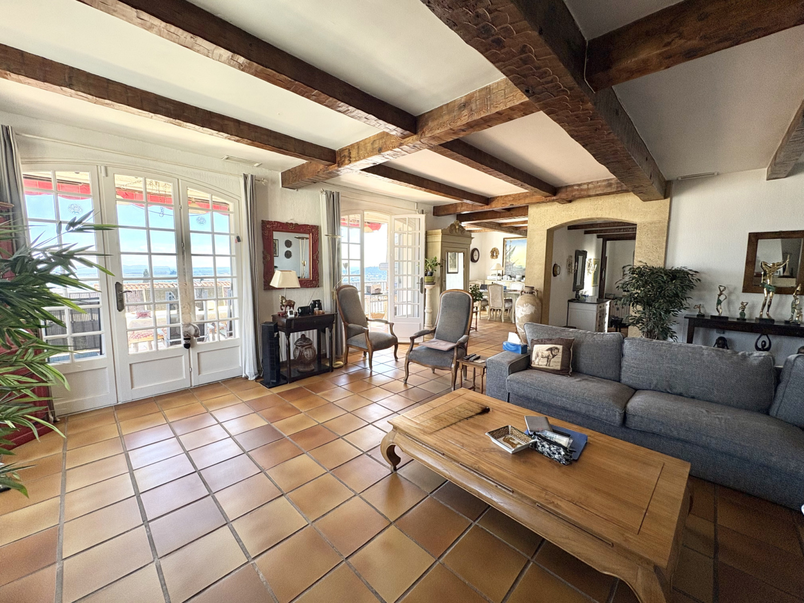 La propriété se compose de cinq chambres ainsi que de pièces de vie aux volumes confortables, offrant une circulation fonctionnelle et agréable. Le séjour et la salle à manger s’ouvrent sur plusieurs une terrasse de 45m2, créant une continuité naturelle entre les espaces intérieurs et extérieurs.