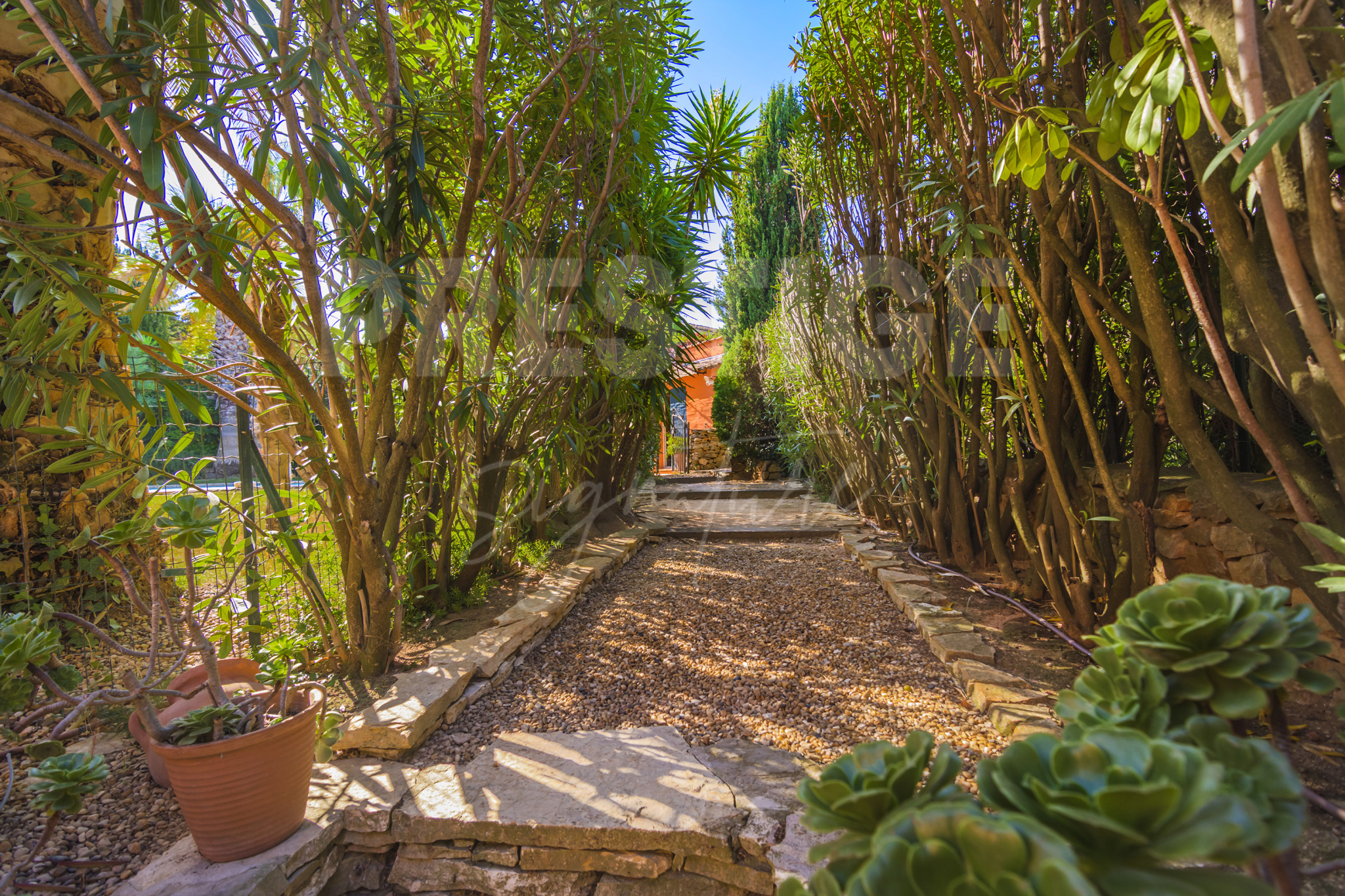 Entourée d’un jardin méditerranéen luxuriant, la bâtisse se dévoile dans un environnement résidentiel privilégié, à l’abri des regards et à seulement 15 min à pieds des plages.