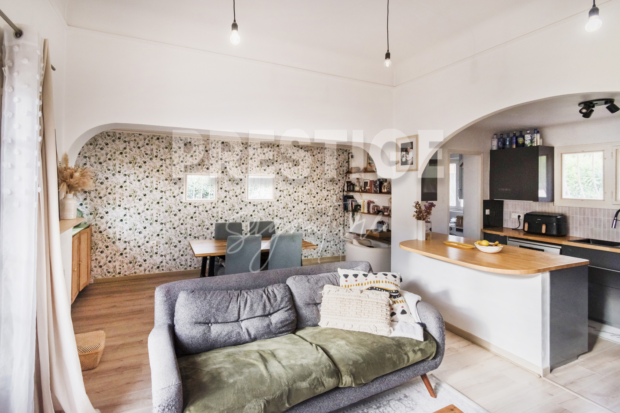 Maison sur une parcelle de 500m² compisée de 2 chambres , d un bureau ,d une belle cuisine ouverte sur salon .
