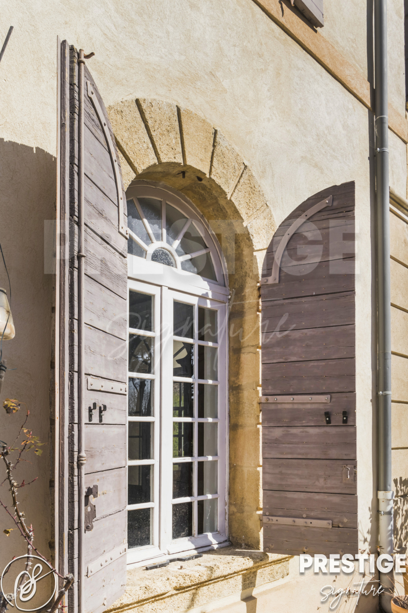 Cette bastide est située en zone urbaine avec une vue très dégagée sur les collines environnantes. Elle est proche de la campagne et des accès autoroutiers. L'arrêt de bus se trouve à 50m, la gare TGV est à 15 mn, l'aéroport à une demi-heure. Elle est sécurisée grâce à 2 portails télécommandés et un haut mur.