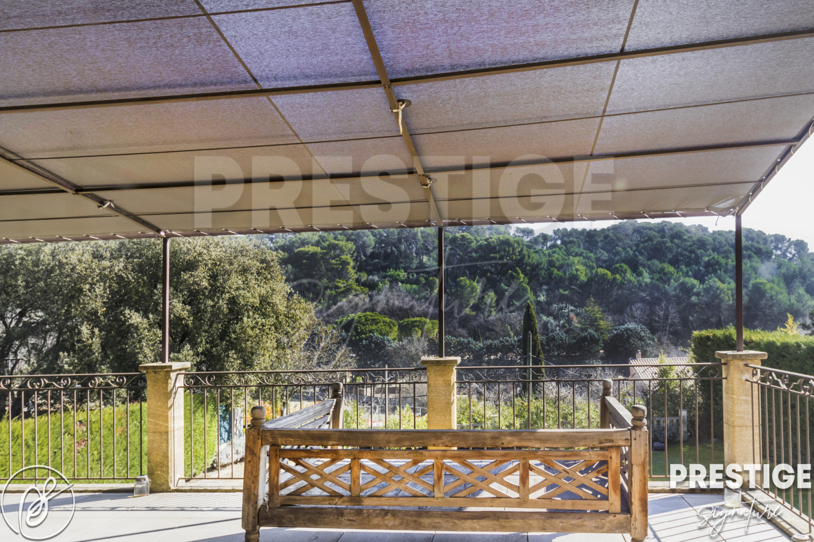 Cette bastide est située en zone urbaine avec une vue très dégagée sur les collines environnantes. Elle est proche de la campagne et des accès autoroutiers. L'arrêt de bus se trouve à 50m, la gare TGV est à 15 mn, l'aéroport à une demi-heure. Elle est sécurisée grâce à 2 portails télécommandés et un haut mur.