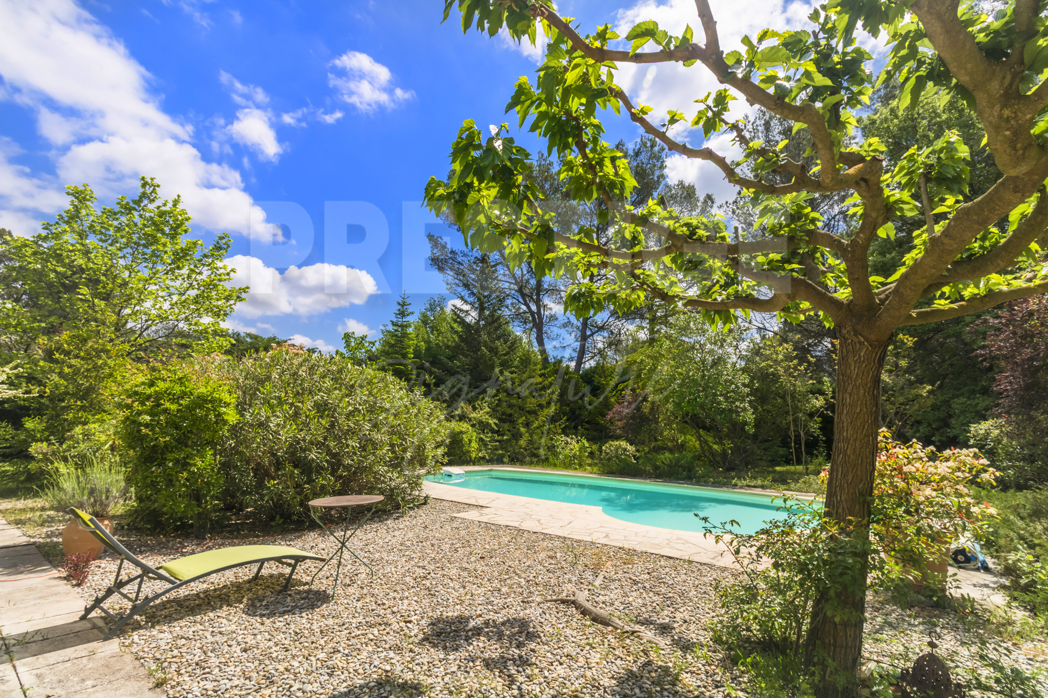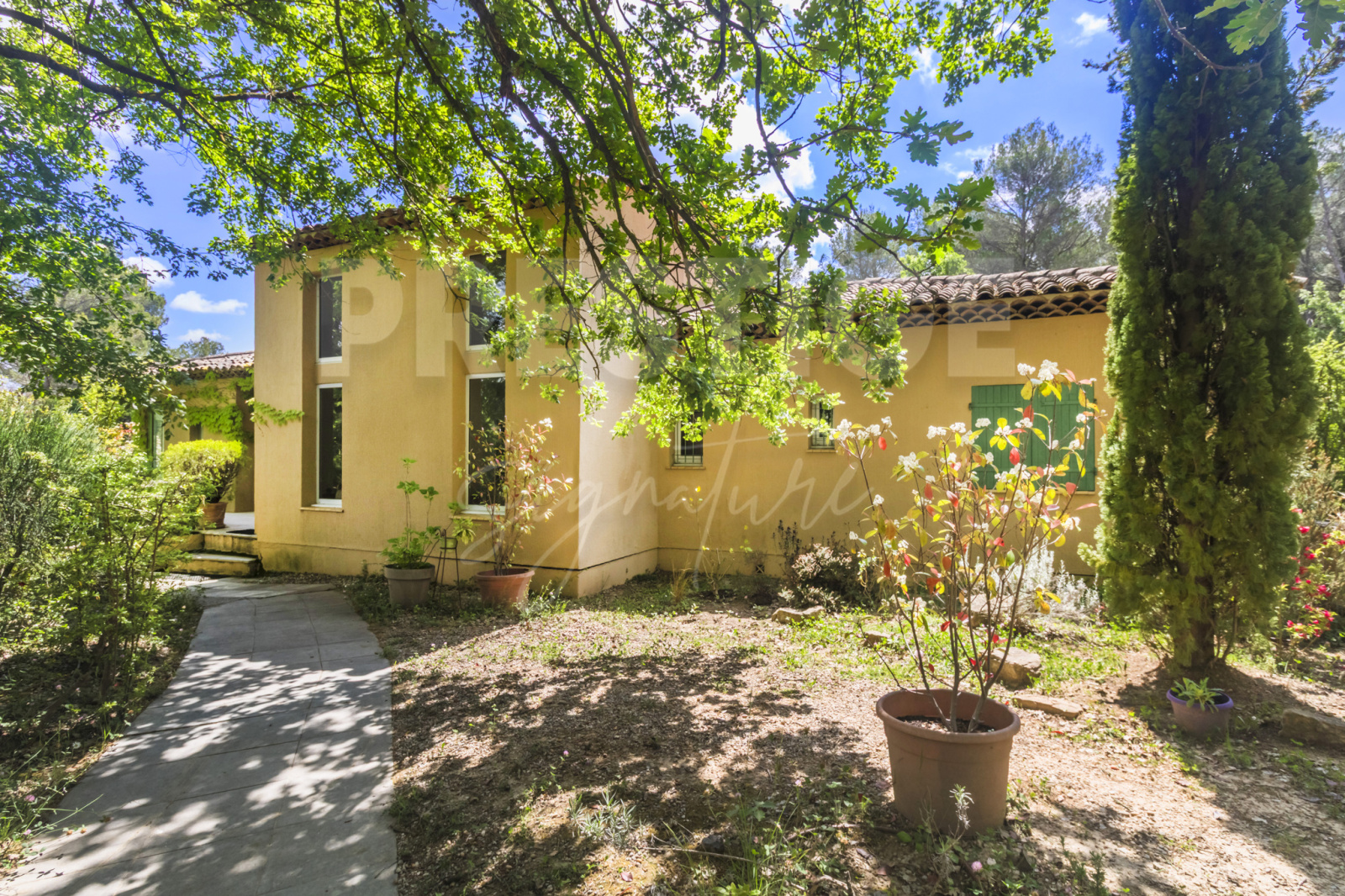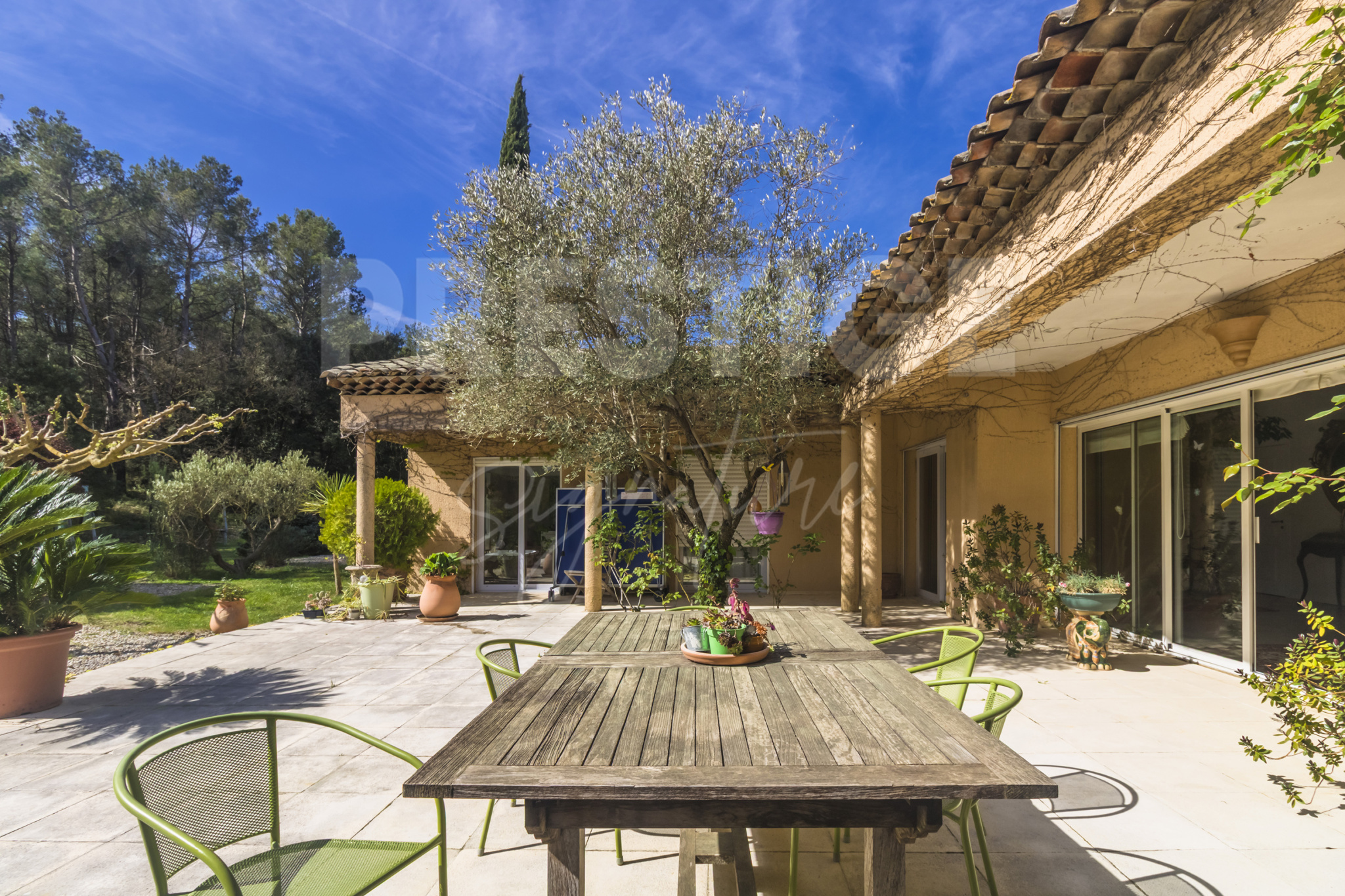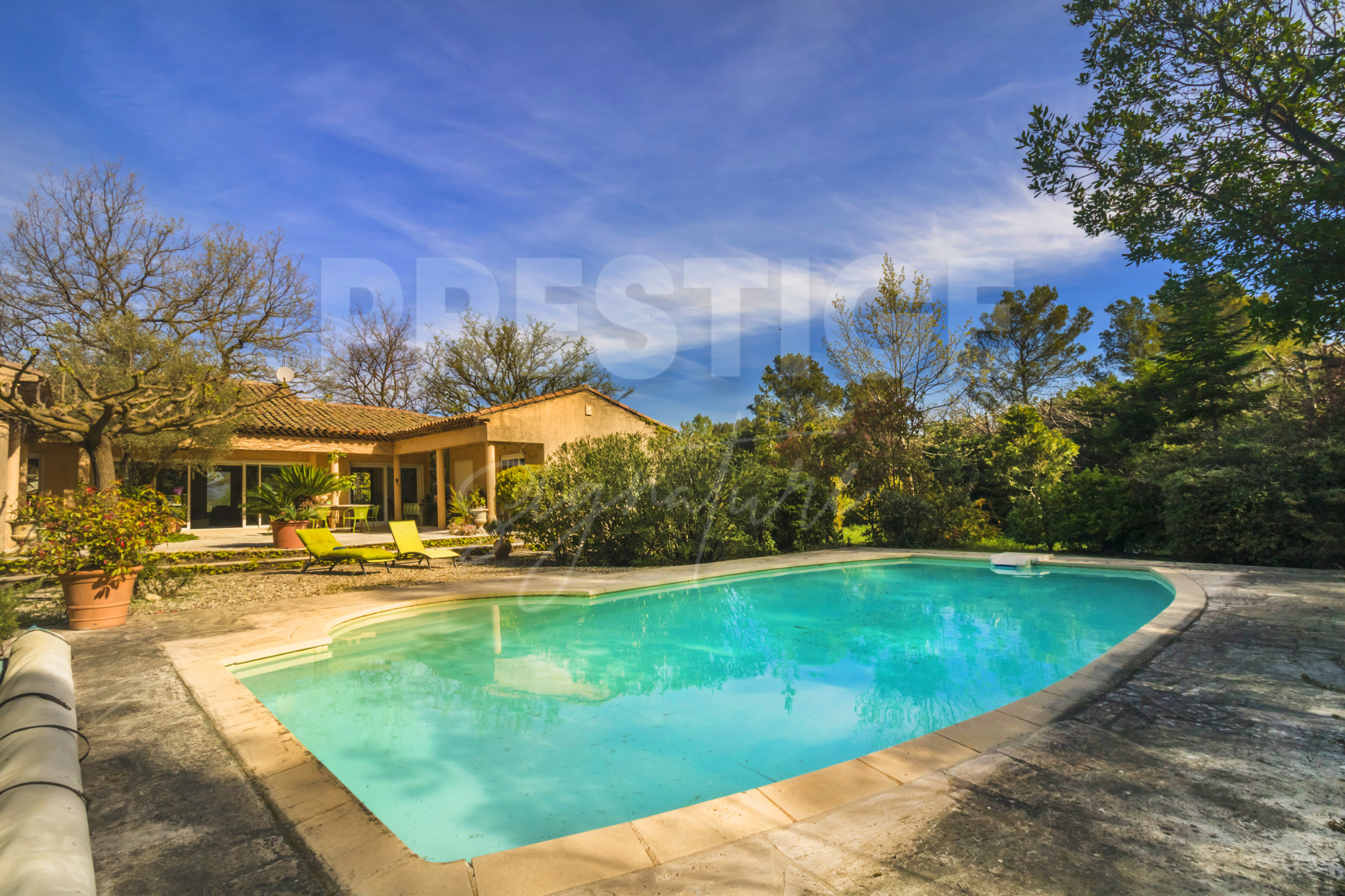 Fuveau (13710)Emplacement privilégié à quelques minutes seulement du Golf de Fuveau et de l’École Internationale de la Sainte-Victoire, 15 min d’Aix-en-Provence, 25 min de la gare TGV et 30 min de la mer. Nichée au cœur d’un écrin de verdure rare à la vente sur Fuveau, cette magnifique villa de plain-pied offre un cadre de vie exceptionnel sur un terrain paysager et clôturé de 13 500 m², dont 5 000 m² de forêt privée. Sans aucun vis-à-vis, elle garantit une intimité totale et un calme absolu. Le terrain est soigneusement arboré d’essences méditerranéennes et provençales, et bénéficie d’une vue imprenable sur la Sainte-Victoire. Une piscine intimiste ainsi qu’un vaste patio exposé plein sud complètent ce cadre enchanteur. À l’intérieur, la maison séduit par ses volumes généreux et sa belle luminosité. Elle se compose de trois chambres où chacune a sa salle de bain et toilettes, dont deux avec un accès direct au patio. La pièce de vie chaleureuse et baignée de lumière s’articule autour d’une cheminée et s’ouvre sur une cuisine entièrement équipée avec îlot central. Une mezzanine surplombe l’espace, offrant un coin détente ou bureau supplémentaire. Une véranda, un cellier et un WC indépendant viennent compléter l’ensemble. Cette villa comprend d’autres prestations : sous-sol de 100m² avec possibilités d’y stationner deux véhicules, portail automatique, volets roulants automatiques, climatisation, raccordé au Canal de Provence, possibilité d'extension de 40m2. Un bien rare à Fuveau, alliant confort, nature et sérénité, idéal pour les amoureux de la Provence en quête d’un lieu de vie paisible et privilégié.