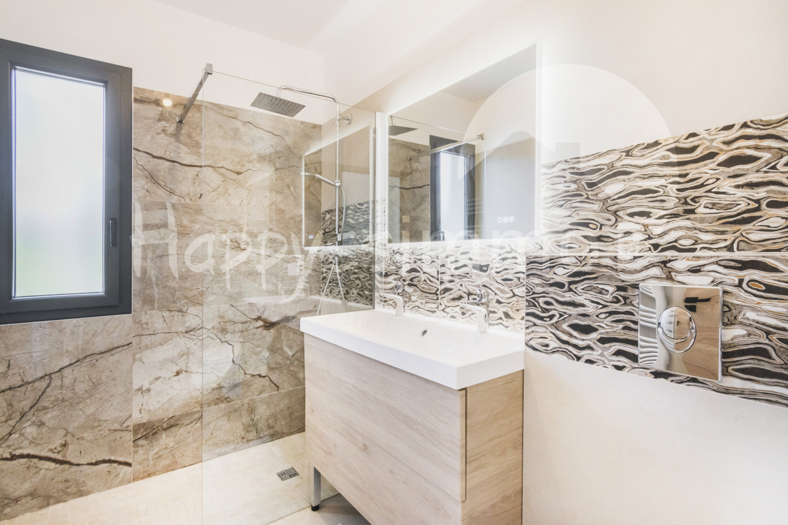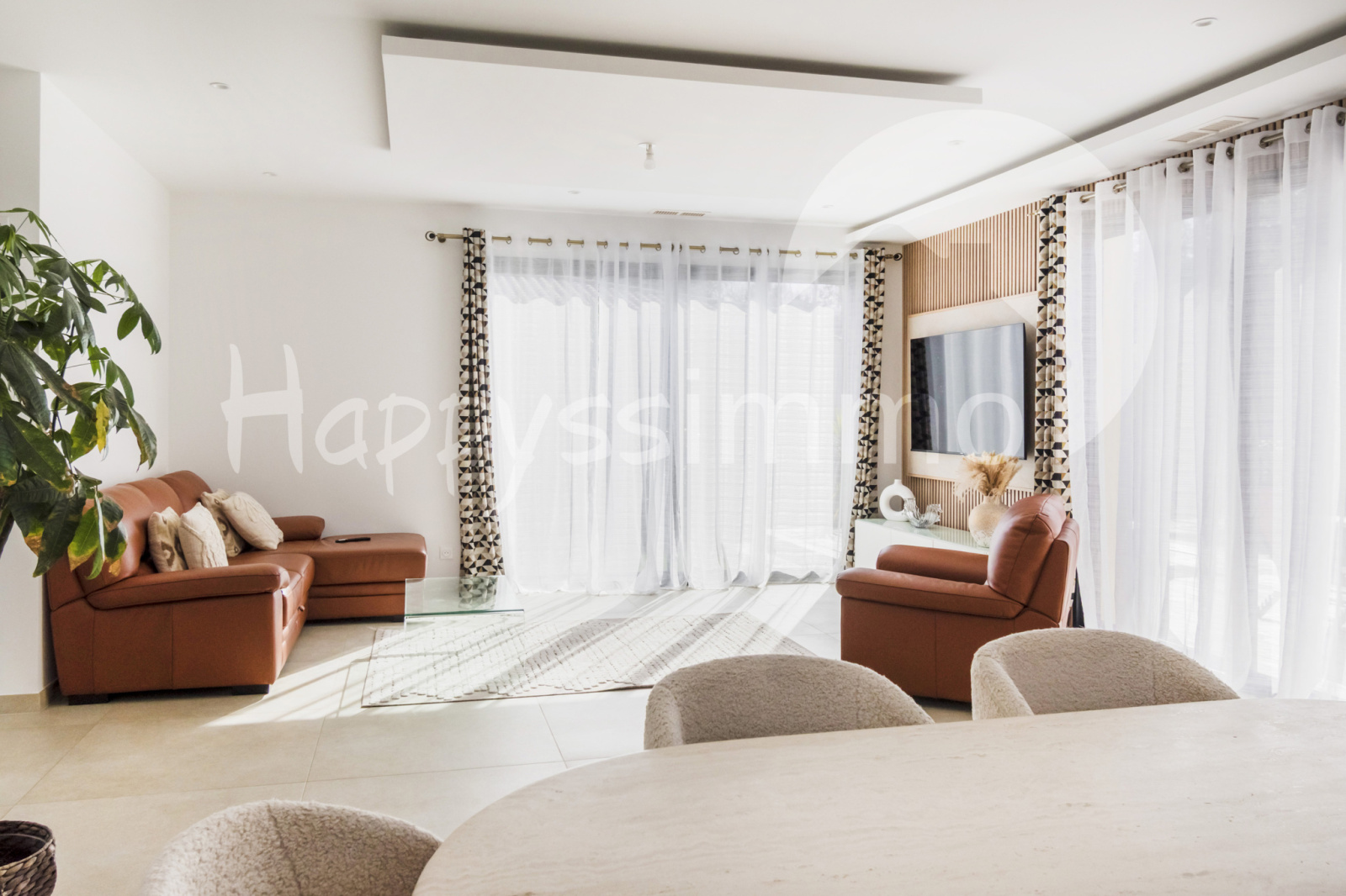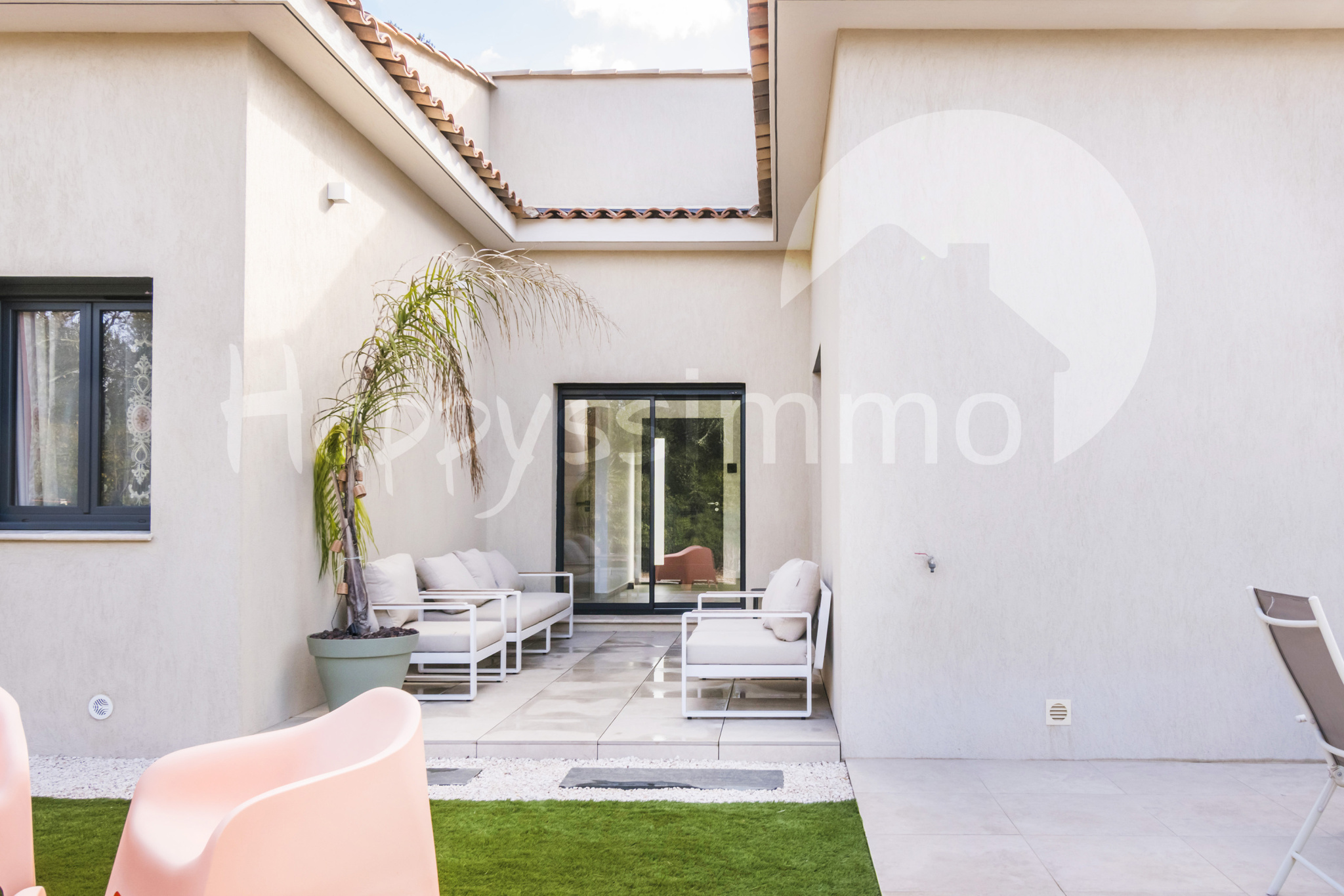 Edifiée sur un terrain de 900 m², elle développe environ 120 m² habitables et offre un pièce de vie 50 m² avec cuisine ouverte, moderne et entièrement équipée avec un accés au patio. La belle hauteur sous plafond renforce la sensation d'espace et de confort.