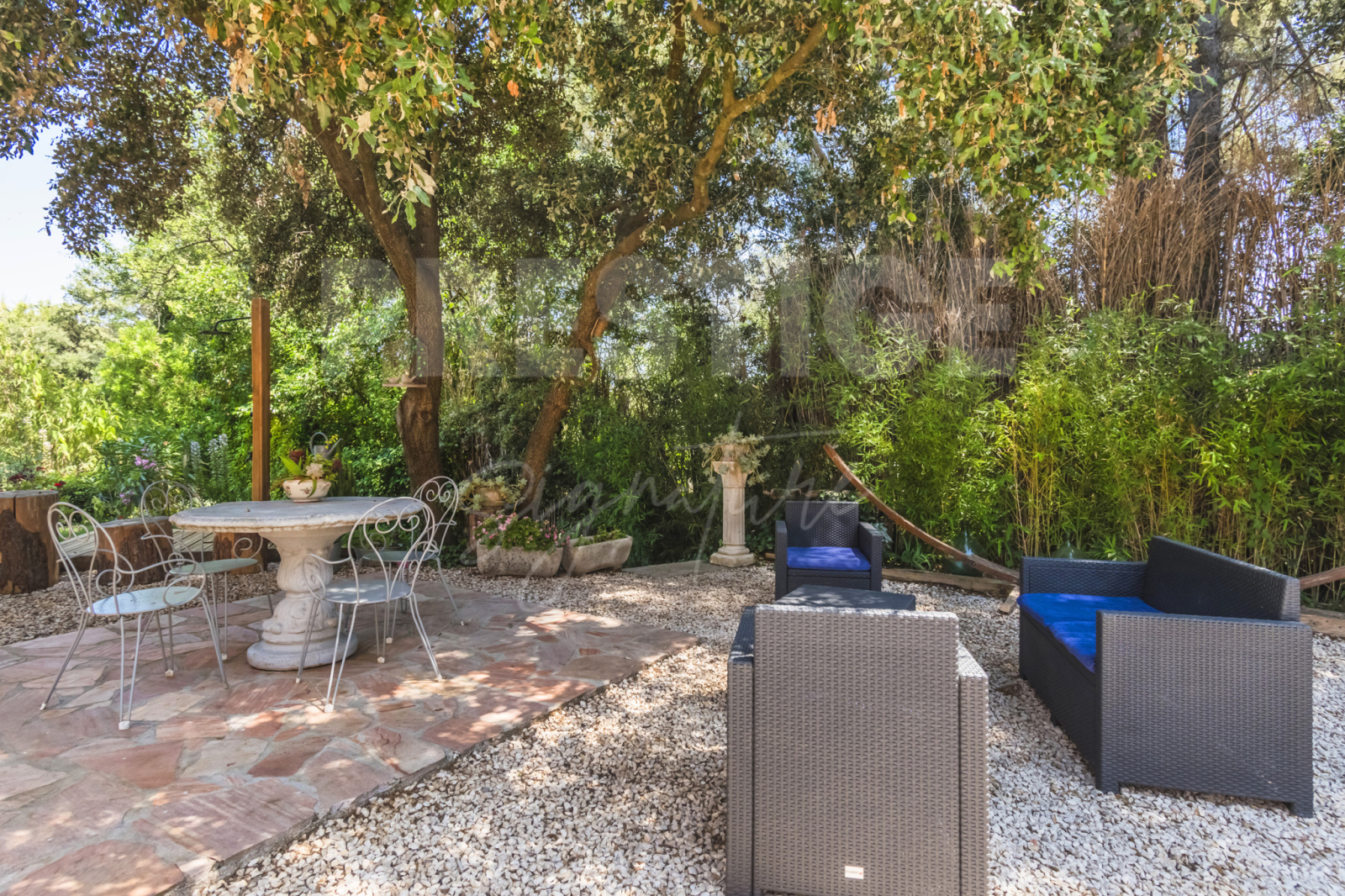 Le terrain paysager de 2 500 m2, entièrement clos et soigneusement entretenu offre une intimité totale sans vis-à-vis.