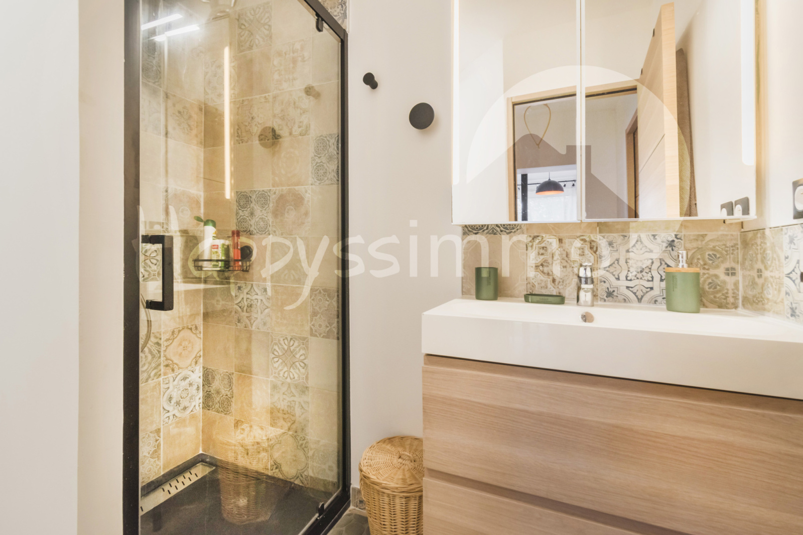 - D'une entrée, de deux chambres, d'un wc indépendant, d'une salle de bains, d'une cuisine ouverte entièrement équipée sur un vaste séjour / salle à manger, ambiance chaleureuse avec poêle à bois et climatisation réversible.