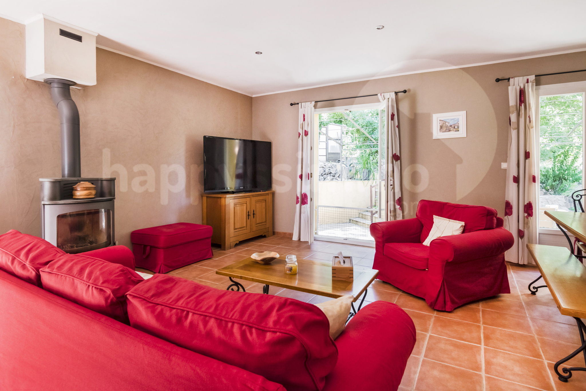 . Bel espace de vie avec poêle à bois