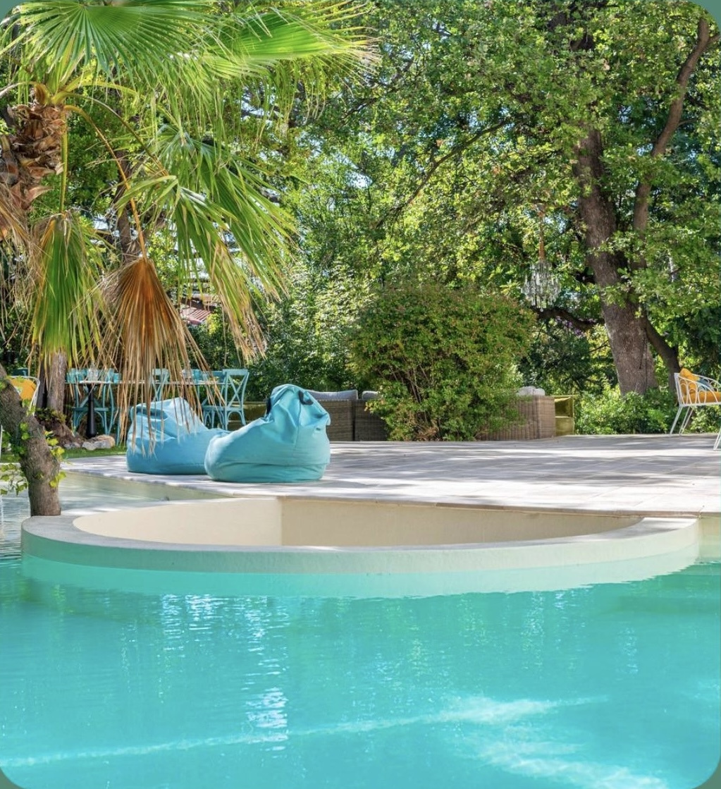 En contrebas, un espace bien-être exclusif de 200m2, accueille une salle de sport, un hammam, un sauna, une salle de massage. À l'extérieur, une piscine complète cet ensemble dédié à la détente.